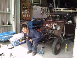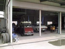 『河端自動車』さんに2CVを降ろし御挨拶をして場所を確保、さあいよいよ作業の始まり、終わりは夕方6時半でした。