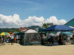 (左)焼き出す (中)飛ばし出す (右)ビーチパーティー本部テント