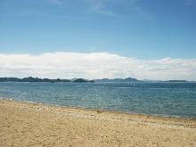 (左)着きました堀江海岸 (中)準備する松山面々 (右)感動に浸る?途方に暮れる?