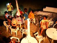 小池はん等地元バーテンダーの方々の協力と運営で成り立っておりビーチバー(パッセンジャーは酒類OK)や野外ステージの設営やらP.A.機器のレンタル等に至まで一切合切のお世話をしていただいてるのです。一人2000円の参加費で飲み放題(運転者はノンアルコール)でこの日は名物『小田』のたらいうどん付きと豪勢な事に成りました。