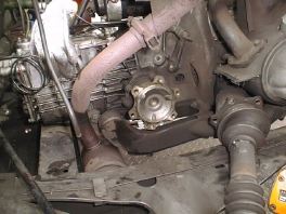 お昼頃に集合してガレージに向かい先ずはフロントのパネル類を取っ払ってエンジンルームをむき出しにしました(上表紙写真参照)。2CVの整備の基本はこのお姿からと言っても過言では無い気がするのですがこの姿にするには以外と簡単で慣れれば5分とかからないのです。ジャッキUPして勿論ウマをかましてさあ作業の始まり始まり。