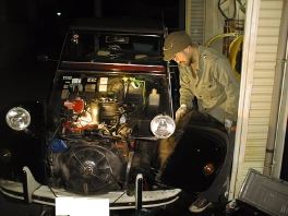 写真からわかるようにお昼1時に始まった作業が終わったのは夜8時半でした。2CVは部品代が安いのと今回ディスクローター等は僕の手持ちの新品(だけど古い『新古』シンプル)部品を安くあるいは只で分けてあげたうえに作業も自分達でやったので